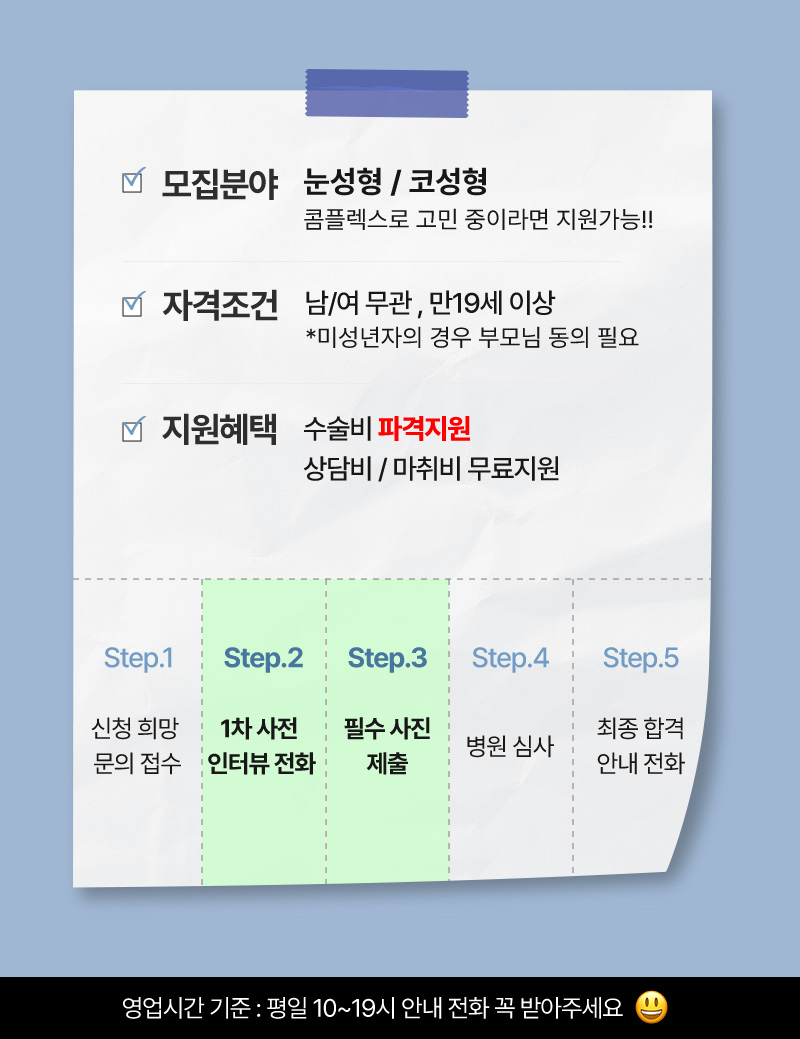 • 병원 정보 제공 및 관리: 필수항목: 성명, 생년월일, 성별, 연락처, 이벤트 내용
